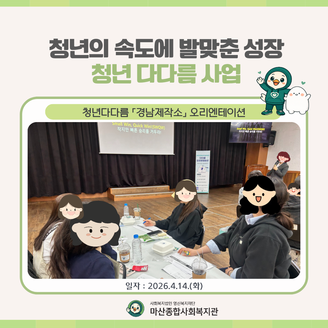 담당자 : 마산종합사회복지관 서비스지원과(청년다다름 경남제작소) 과장 김혜민 (055-223-9980)