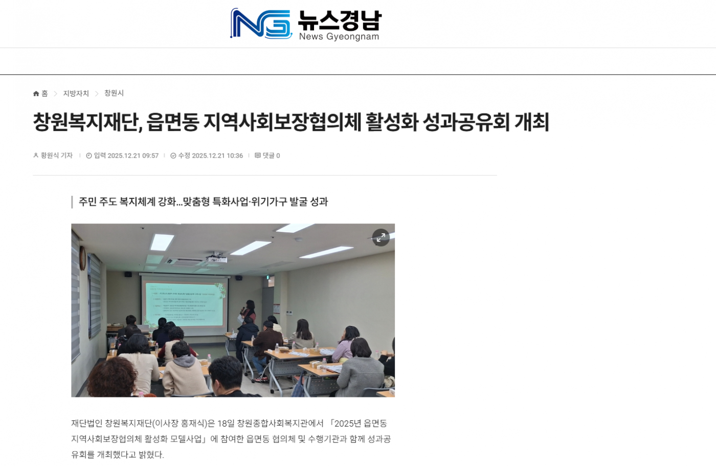 창원복지재단, 읍면동 지역사회보장협의체 활성화 성과공유회 개최<뉴스경남>