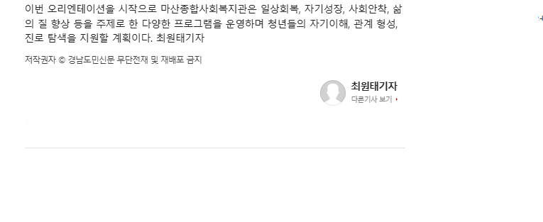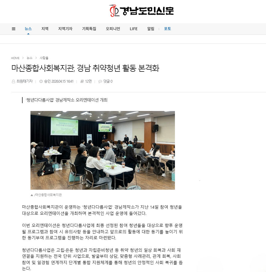 마산종합사회복지관, 경남 취약청년 활동 본격화 <경남도민신문 외 1곳>