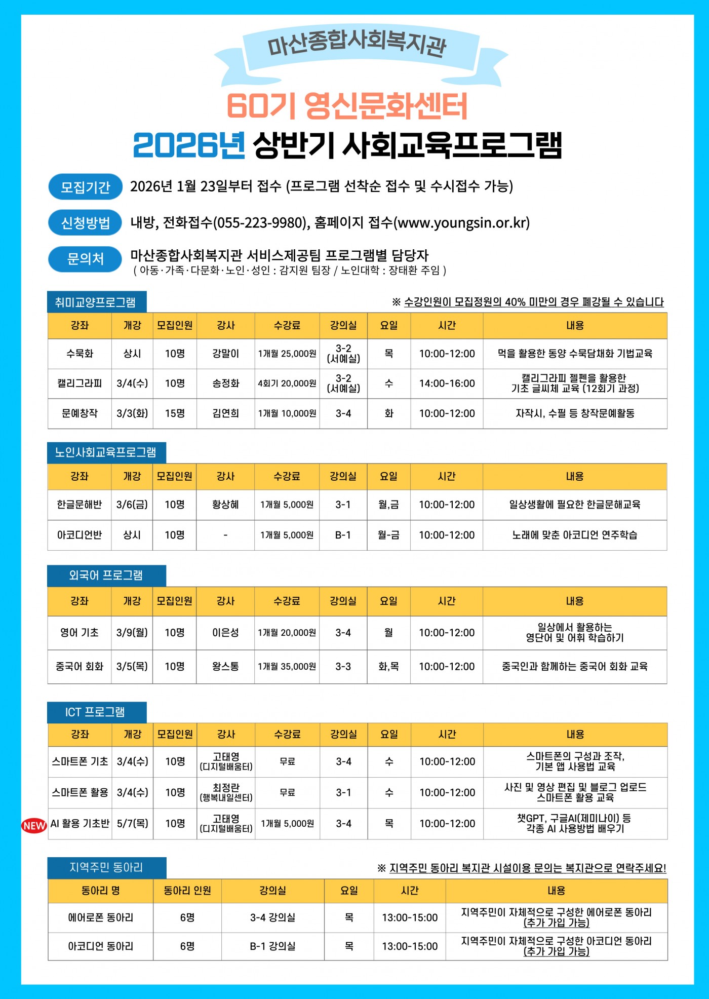 [2026-1학기] 60기 영신문화센터 사회교육프로그램 수강생 모집