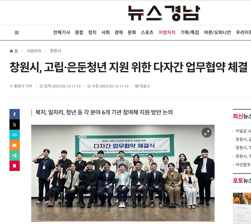 창원시, 고립·은둔청년 지원 위한 다자간 업무협약 체결 <뉴스 경남>