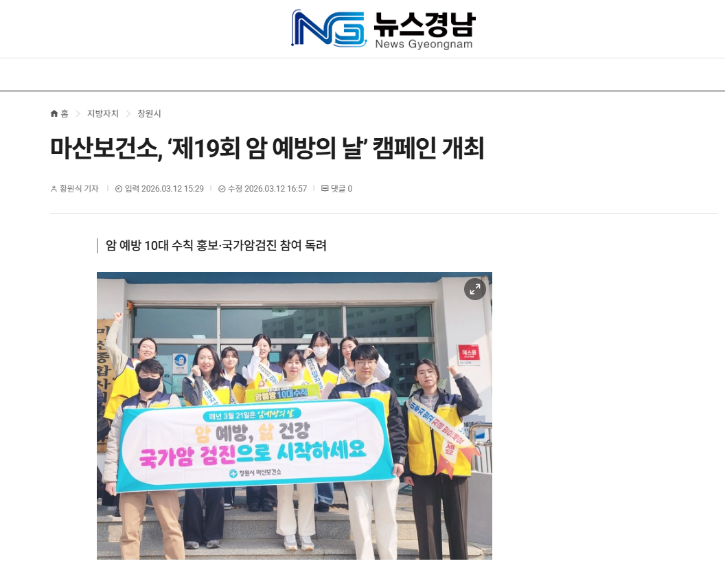마산보건소, ‘제19회 암 예방의 날’ 캠페인 개최 <뉴스경남>