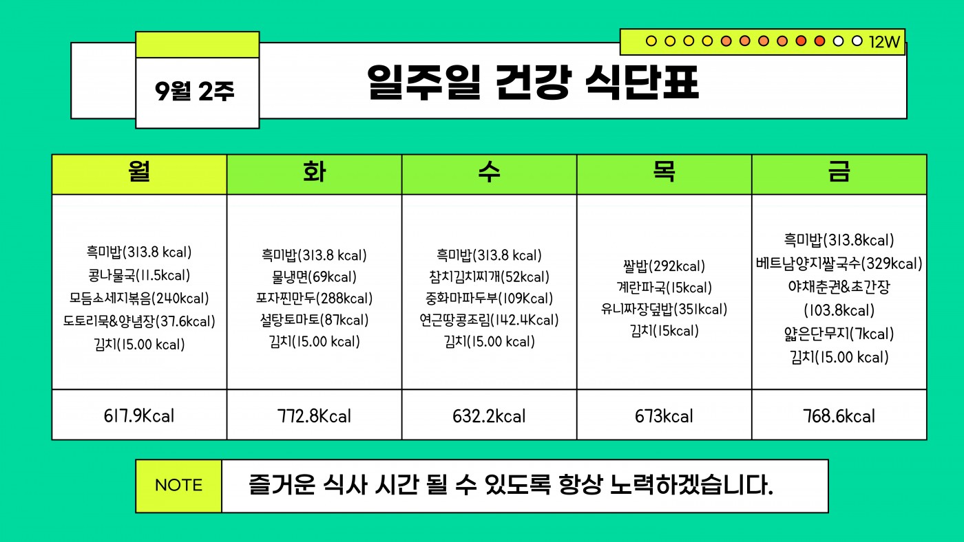 2025년 9월 2주 식단표(2025.09.08~2025.09.12)